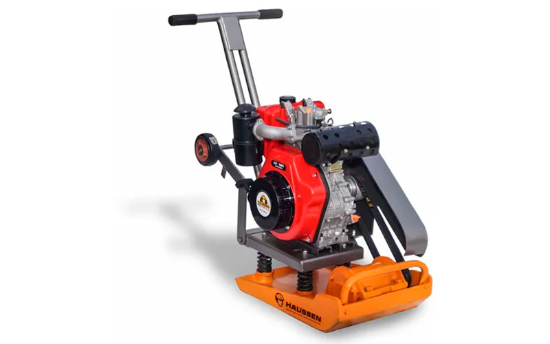 La placa vibratoria tipo rana HAUSSEN, está equipada con una excéntrica de gran capacidad, logra una eficiencia única en compactación de materiales granulares no cohesivos, especial para grandes superficies como parqueaderos, zonas peatonales, instalaciones de materiales adoquinados, senderos, entre otros. Equipo para disminuir espacios entre partículas, se obtiene un suelo estable, compacto y plano.